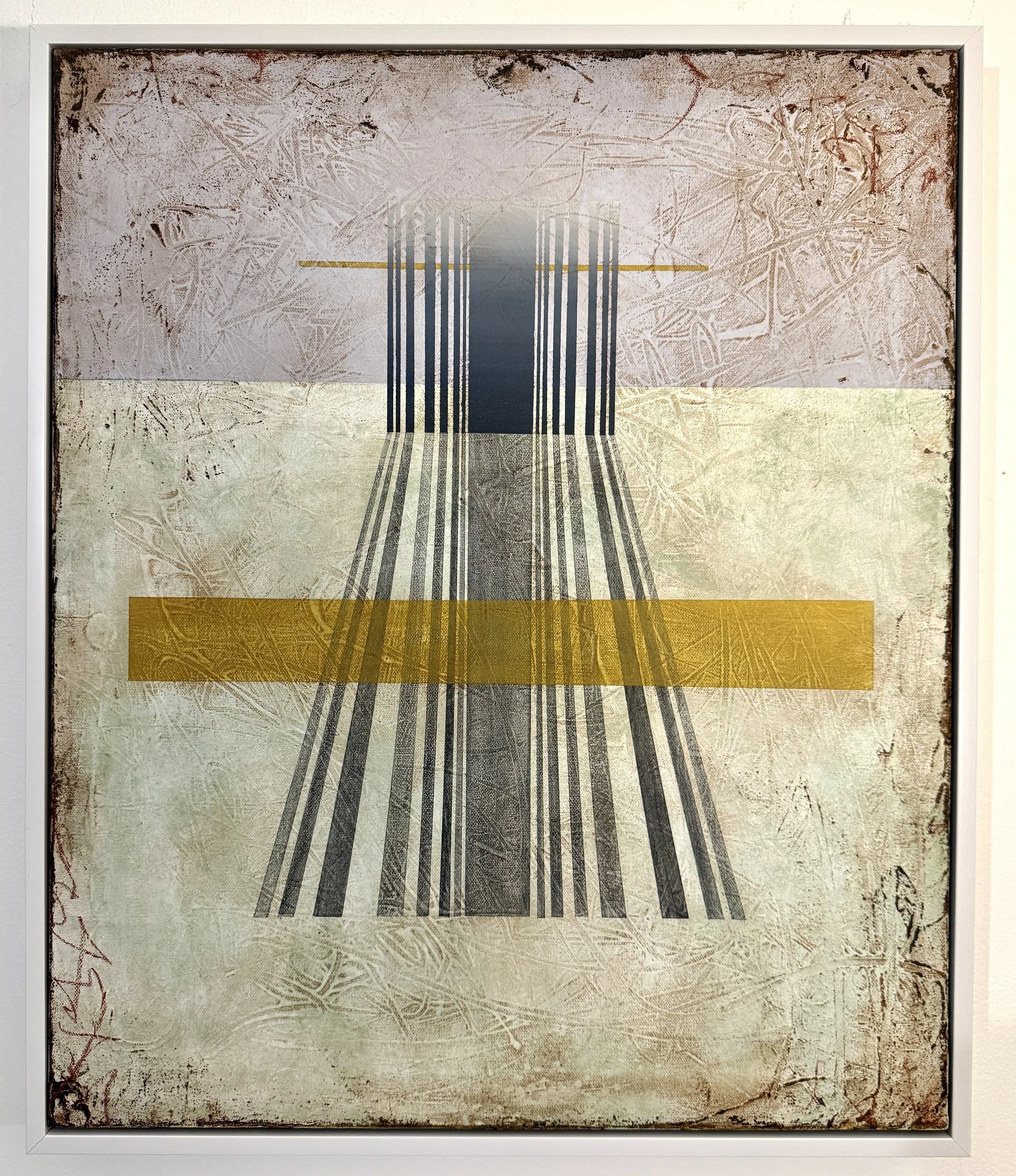 My work explores the spectrum of emotion through abstraction, using acrylic paint as a primary medium. I work with simple forms—hard-edged shapes often layered with soft, asemic marks inspired by Japanese Shodo—to create a tension between structure and spontaneity.
